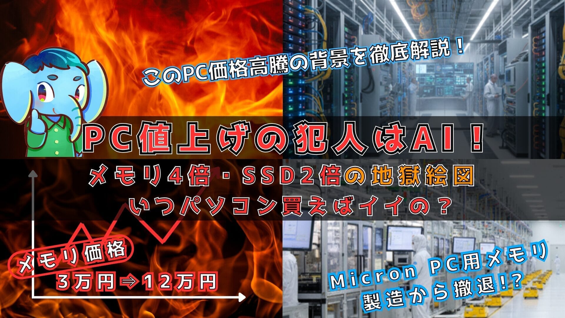 2026年のパソコン市場は、AI需要に起因する半導体供給不足により、メモリやSSDの価格が異常に高騰し、大手メーカーも軒並み値上げしている前例のない「地獄絵図」に直面しています。